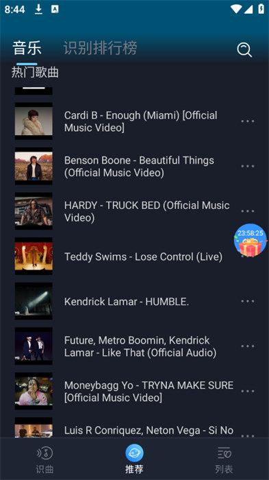 2、通过音乐的排行榜找到用户们所在国家和城市中受欢迎的音乐,十分的丰富;
