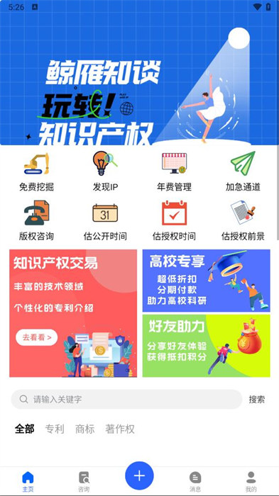 鲸雁知谈app是一款专注于知识产权经验内容分享以及只是产权业内的专家在线交流的应用,提供了十分全面的专利、商标和著作权等咨询和专业的咨询服务内容,了解到产权专家分享的经验和案例的内容,同时还可以获取到知识产权的申请注册等专业资讯服务的内容,帮助用户更好的了解知识。