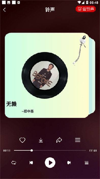 老歌精选是一款播放各种各样音乐资源内容的应用,海量的音乐资源的内容任用户们去进行选择,点击右上角的搜索功能的内容就可以去搜索自己想要听的歌曲内容,打开歌曲点击右上角的设为铃声就可以设置自己喜欢的音乐资源的内容成为自己的来电铃声等,更具有提示选择设置铃声的位置就可以。