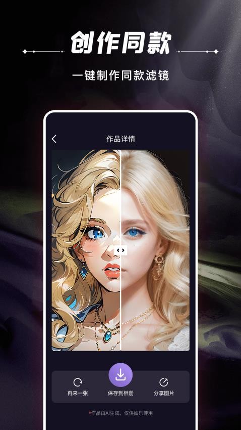 2、在线对喜欢的同款滤镜进行制作,并且支持一键保存下载随时的进行使用;