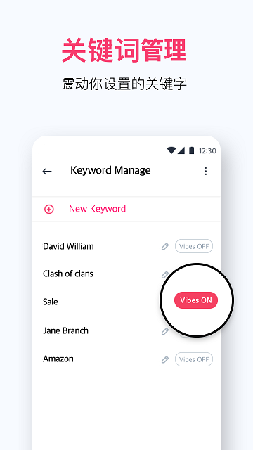 6、开启关键词进行消息的分类管理,方便及时的处理手机中的各项通知消息。