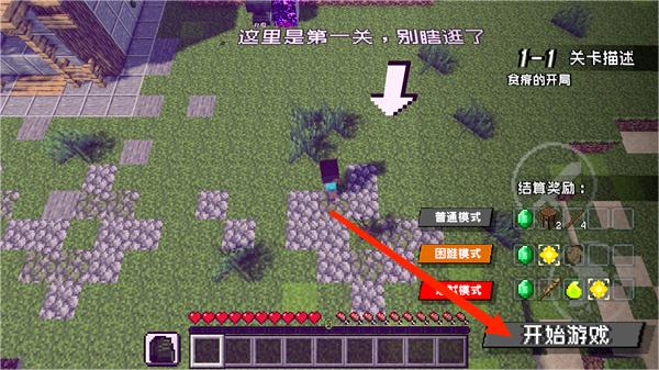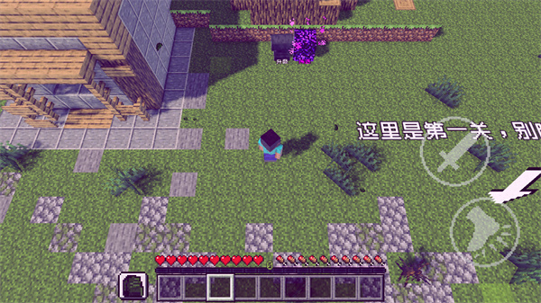 4.进入地图后,走到“这是第一关”字眼的下面;