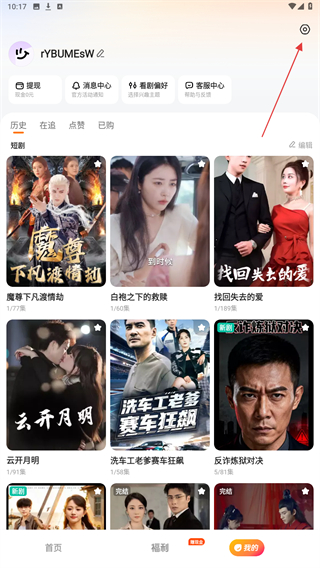 1、启动喜番短剧APP,进入时点击底部我的按钮。