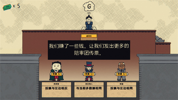 4、在第一回合判定有罪之后,就可以获得一些钱,然后再去【传唤更多陪审员】花钱传唤;