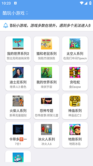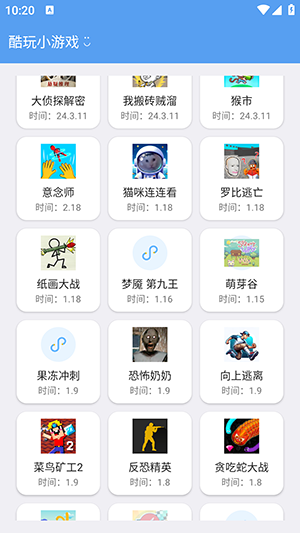 酷玩小游戏app拥有海量的各种类型游戏资源的软件,在这类能够看到各种不同玩法类型的游戏,各种小游戏的资源可以一键下载安装,并且为了保障各位对于资源的下载安全上,所有的资源都经过严格的审核,保护各位对于资源的下载上更加的安全不会造成手机侵入病毒的问题,所以请各位用户们能够放心的下载,如今该平台中依旧会不断更新最新的小游戏资源,一起来看看有哪些热门的小游戏可以下载吧。