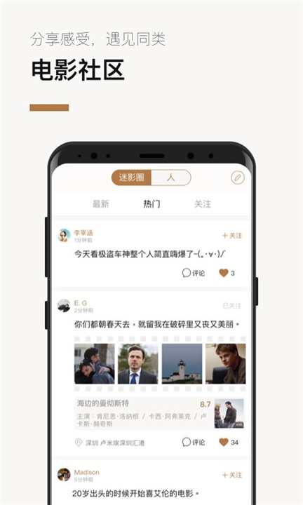 2、在这里能够与其他的影迷分享自己的电影心得,交流自己对于电影的最新看法等;