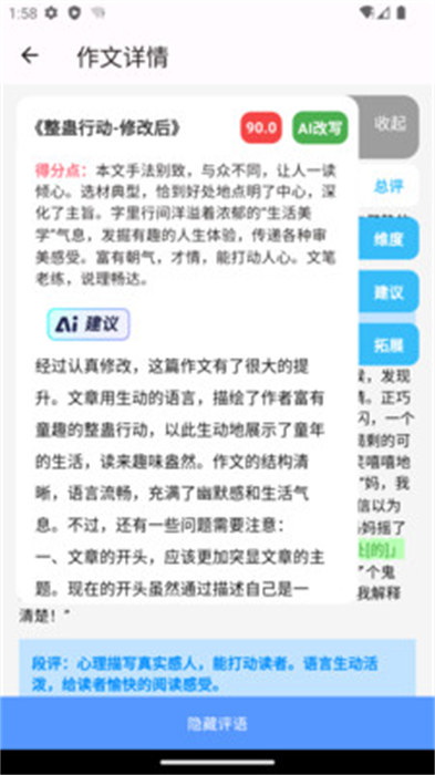 1、提供了具有针对性的修改作文内容的建议,帮助用户们理解到错误的原因;
