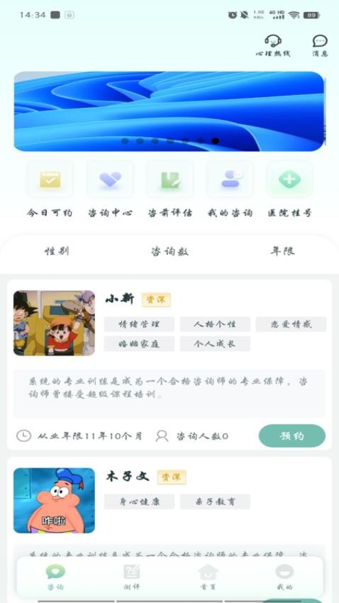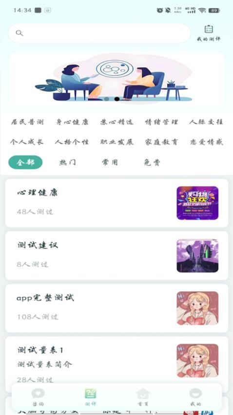 心理帮手app是一款优质的心理咨询平台,目前的很多心理测试非常的简单,只需要简单的题目就能了解大概的情况,这样让很多用户都对心理方面更加重视,并且越早治疗心理问题能更轻松的解决,同时这里的咨询会长期更新,以便你在空闲时间都能点击并了解,这样也增加了对心理方面常识的了解,如果你对心理非常的有兴趣,完全能到线上一起订阅课程,更加系统性的学习关于心理知识,日常对这方面感兴趣的用户快来下载吧!