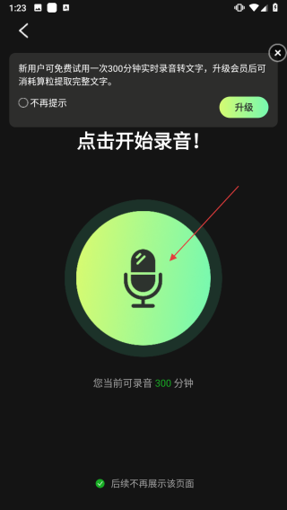 2、在AI音视频转文字页面,点击开始录音选项,进入录音准备界面。