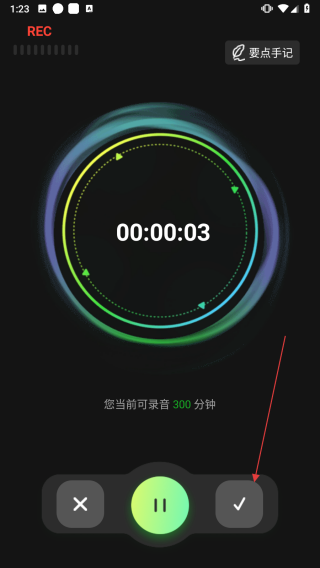4、录音结束后,点击界面中的对勾按钮,进入音频处理页面。