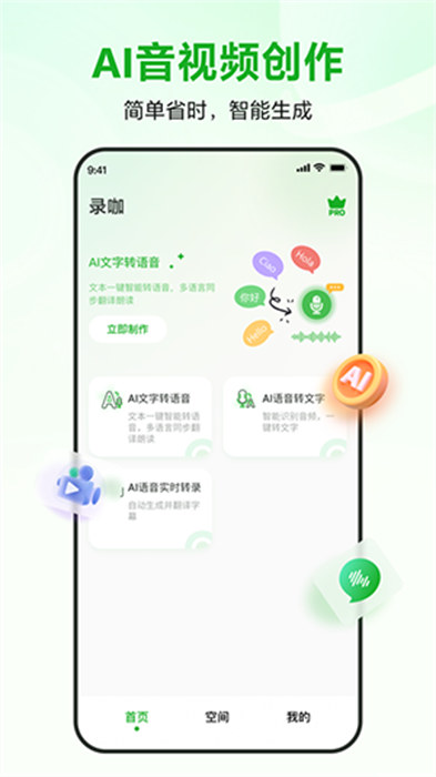 录咖app是一款搭载高端AI技术的综合音视频编辑工具,核心优势在于能依托智能算法一键生成多样化视频内容,无需复杂操作即可快速出片,它同时覆盖音频剪辑与视频编辑全流程,支持素材裁剪、特效添加、音画同步等功能,无论是有经验的内容创作者用于高效产出,还是对音视频制作感兴趣的新手小白入门尝试。