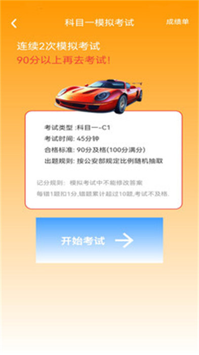 2、能够进入到不同的科目去进行考试,通过模拟考试查看自己考试具体分数;