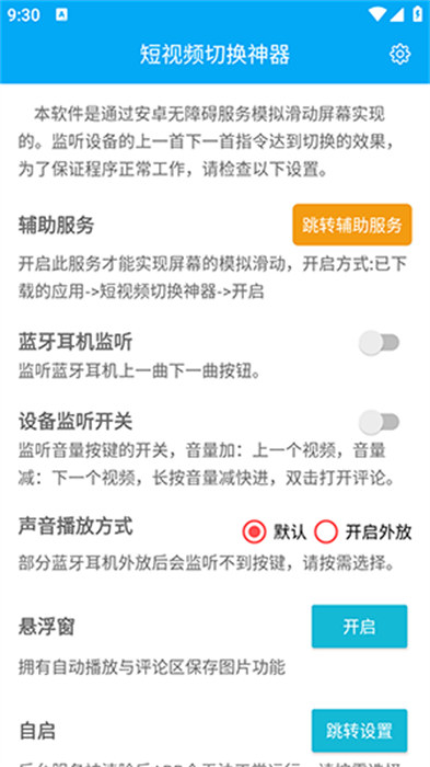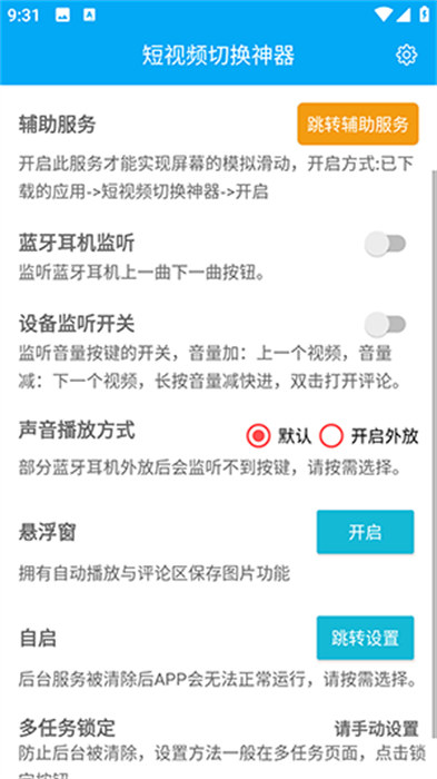 短视频切换神器是一款切换短视频内容的应用,确保用户们的手机和蓝牙耳机成功的去进行连接的操作,打开软件之后并且启动短视频切换助手的功能内容,在刷短视频内容的时候通过蓝牙耳机输入语言的口令,比如下一首切换到下一条短视频内容里面,这款软件会自动在后台去进行运行的操作。