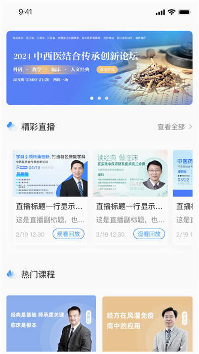 国民学国医是一款学习更多知识内容的应用,传播中医药的文化知识的内容,支持在线上观看课程和视频的内容,用户们对于西学中课程的项目内容的报名选课以及学习的操作,适用非中医类别的医护人员,加强自己对中医药人才的培养,选择自己所需要学习的知识内容去进行学习吧。