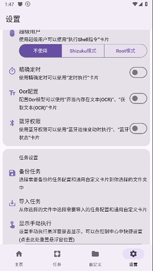 千问点击助手Pro软件提供拥有超多功能自动点击的工具,在该工具的使用下能够解放双手进行自动化的点击功能,在对于日常的自动化的点击得到更加便捷化的操作和使用,利用该工具能够实现各种繁琐点击操作的功能设置,在对于app的设置是上需要开启授权一些必要的权限,无需root权限就能大大的保护用户们在使用时的安全性,满足各位对于自动点击设置的安全性保护功能。