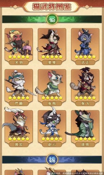 1、名将角色全部以可爱的猫咪形象出现,呈现出全新的三国,带来耳目一新的体验;
