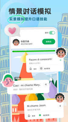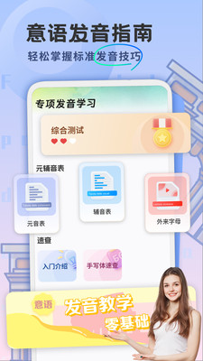 意大利语学习软件是一款非常好用的意大利语学习平台,给用户整理了海量的学习课程以及学习技巧,让你能在短时间内能够进行简单的口语交流,这样才能看到整个学习的兴趣,并且软件内还能进行真人对话,如果是口语对话,还能帮助你纠正整体的发音,想尝试的小伙伴快来下载吧!