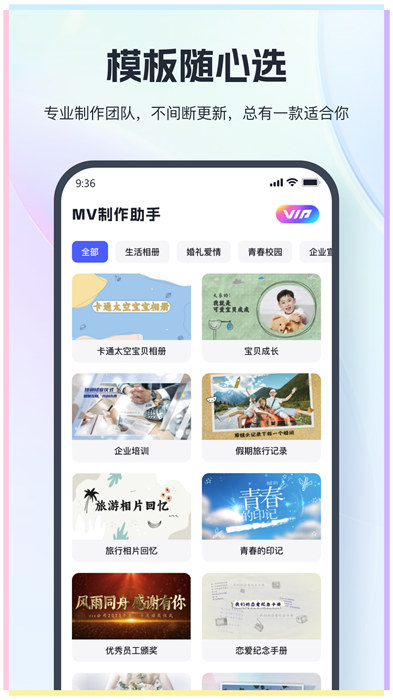 1、内置了十分丰富的MV模板库的聂荣,包括但是不限于生活相册等多种主题;