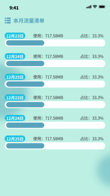 沐雨上网流量软件是一款实时检测目前设备流量使用情况的软件,整个软件内的工具不仅简单且使用完全免费,不会出现任何影响观看的情况,同时还可以看到软件整理出的合适图表,这样查看起来更加直观,在后期使用起来会更加有规划,避免出现超支的情况,想尝试的用户快来下载吧!