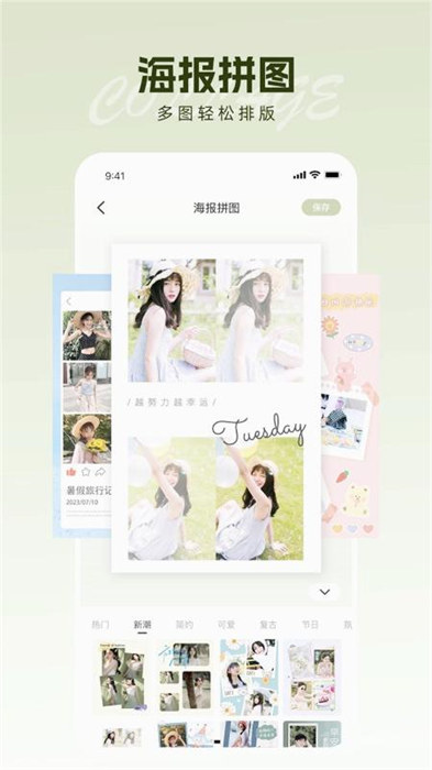 1、提供了许许多多种海报排版的方式和更多的背景选择,让照片看起来更高级;