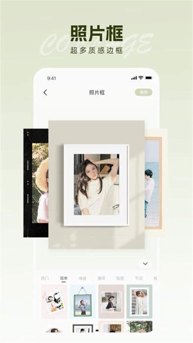 3、给自己的照片上面添加上相框使用户们的照片更加的唯美,更加的实用简单;