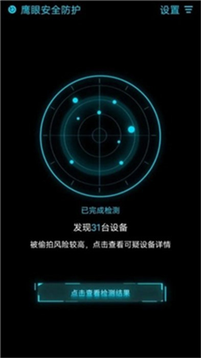 鹰眼安全防护app是一款十分安全的防偷窥的软件,用户们可以试试的监控家庭或者是办公室的摄像头,确保了安全和不被非法入侵的操作,这款软件提供一键式的操作去进行使用,用户们可以十分快速的完成设备的连接和监控。