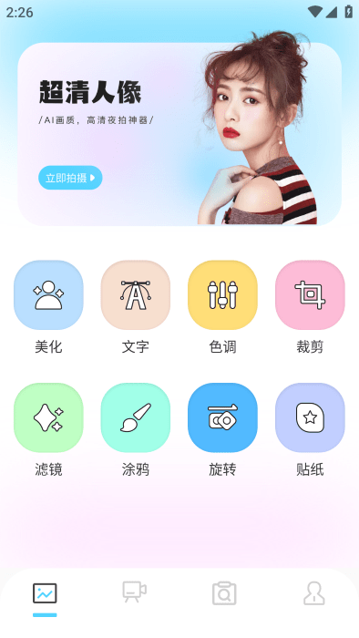 6、提供了多种图片编辑的热门工具使用,感受更加精彩的素材滤镜的搭配。