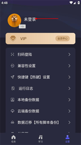 2、在设置页面找到未登录区域,点击该区域进入账号登录的操作页面。