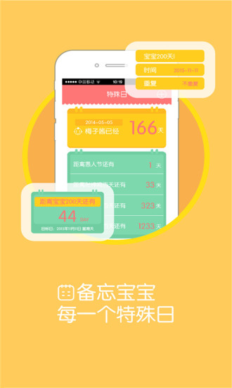 特殊日提醒:备忘宝宝成长的非凡事件,不会错过宝宝的特殊日;