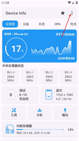 1、该应用中能够看到手机设备中的信息数据,并且在测试功能上更加强大;