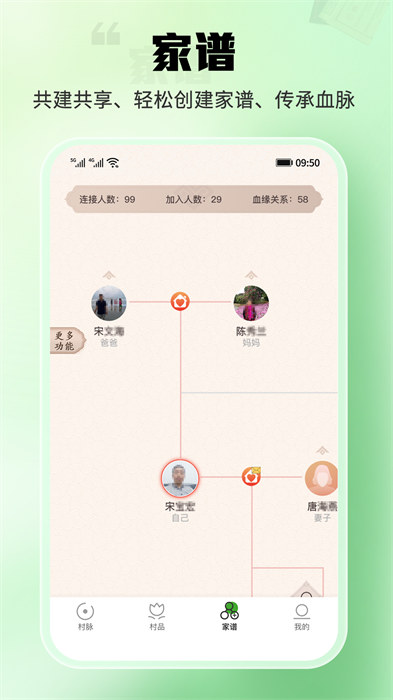 b、家谱整理,不同的姓氏都有相应的家谱,大家完全能够添加属于自己的家谱;