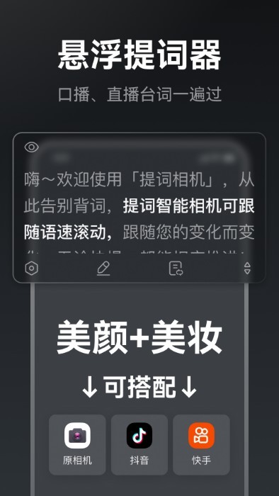 3、为了能更好的进行直播提词的功能,支持拍摄提词、悬浮提词和提词版。