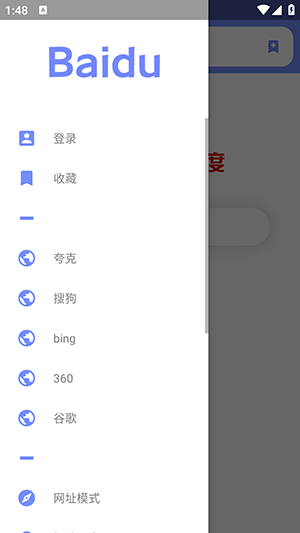 Baidu浏览器是由网友自制上传的能够实现超多综合引擎搜索的浏览器,在这列整体是以百度为主体的框架进行打造,虽然是个内存小但是却是拥有超多引擎接口的浏览器,为用户们带来更多丰富的搜索引擎功能,无论是百度、搜狗、必应甚至是夸克等都有搜索引擎的入口使用,为用户们提供了超多的引擎搜索功能的使用,方便大家在针对不同的内容搜索上,可以获得更多的答案内容查看。