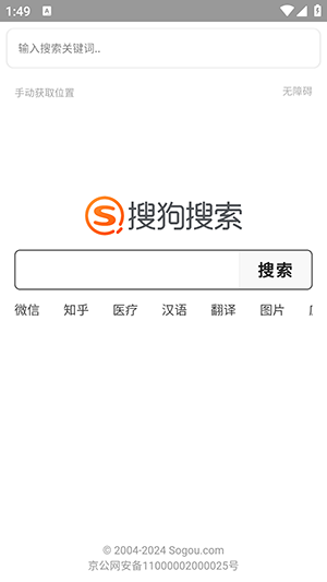 1、该工具中的默认搜索还是百度,页面左滑可以随意切换不同的搜索引擎;