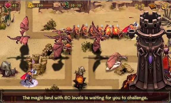 《史诗塔防:黑龙之火》是一款奇幻的策略塔防游戏。《史诗塔防:黑龙之火修改版》以三种元素的不同组合方式召唤出各种不同的魔法塔,充分发挥每一座塔特性是取胜的关键。与火元素签订契约,轻轻的滑动手指便可召唤火焰禁咒净化一切。流星火雨,熔岩滚石,黑龙吐息,丰富的魔法技能等你来体验。森林,雪原,沙漠,熔岩,60个关卡等你来挑战。