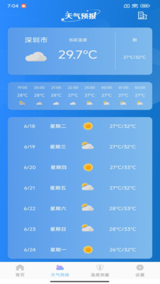 b、天气提醒,每天的天气都能精准的呈现,以便你做好自己的出行准备;