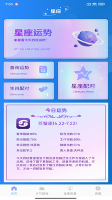 看星盘Sky Guide软件是一款专门在线分析星座的娱乐软件,你能直接绑定自己的星座,并在当天回生成专属的星座运势,让更多的小伙伴能够挑选自己感兴趣的内容,同时还可以帮助自己的好友来检测,了解他的星座未来的发展方向,想尝试的用户快来下载吧!