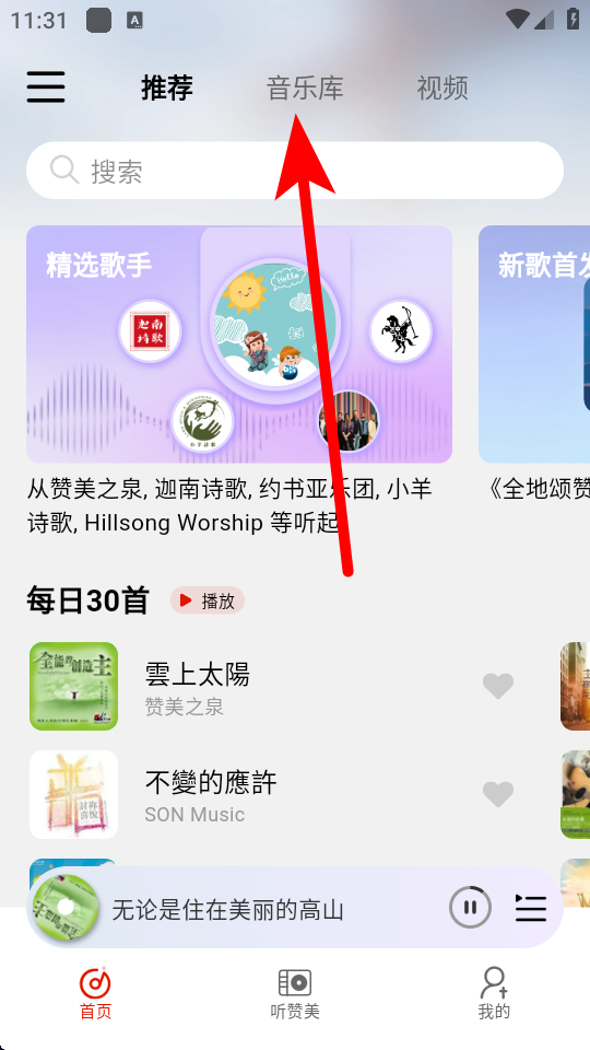 1、软件中会有很多音乐可以收听,主打的是一些赞美的诗歌音乐;