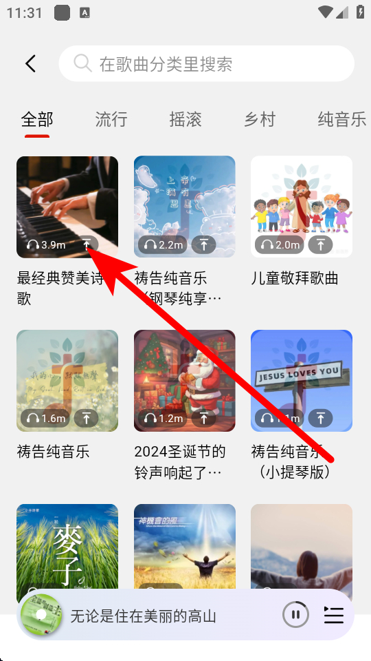3、在歌曲分类界面,选择想要播放的歌单,如最经典赞美诗歌,点击进入歌单详情页面。
