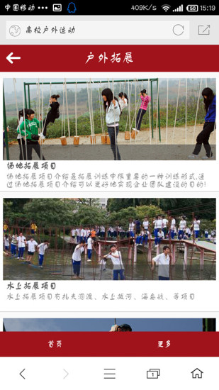 高校户外运动是一款详细介绍高校学生户外运动、户外健身、户外拓展的手机软件,能让您随时随地了解户外运动这个行业的给类信息,各种各样的户外拓展项目的介绍,户外运动装备详情、户外运动攻略等等。
