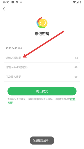 4、填写完手机号获取验证码后,点击输入框填写验证码并在下方输入新密码,完成密码的重置操作。
