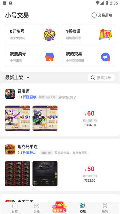 4、不玩的账号可以选择出售给其他玩家,也可以购买其他玩家的账号。