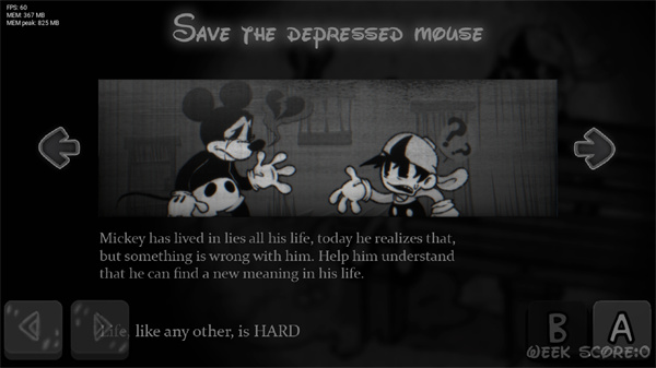 fnf周三不忠夜米老鼠模组(Wednesday's Infidelity)是根据周五夜放克改编的一款音乐节奏手游,该游戏的玩法以闯关为主,加入了独特的米老鼠MOD,黑白的画风给玩家带来沉浸式的恐怖体验。同时,在游戏难度上有大幅度的提升,让玩家感受关卡和画面的独特魅力,玩起来十分有趣味。作为一名出色的闯关者,玩家将在城堡中跟米老鼠一同演奏歌曲,以更好逃脱出去,喜欢的就来下载吧!