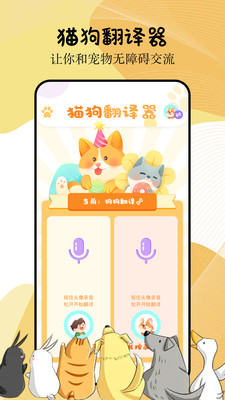 猫狗语言翻译app是一款非常好用的宠物交流辅助软件,这里的翻译功能非常的强大,可以非常轻松的到软件内学习基本的操作方式,并能自己的宠物有更亲切的交流,也能增加你对于宠物方面的了解,减少出现饮食和生活上的问题,想尝试的用户快来下载吧!