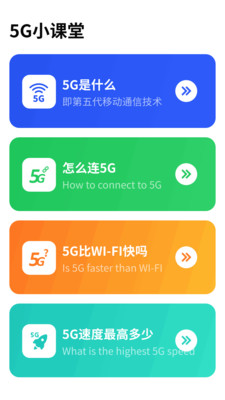 飞速5GWiFi软件是一款操作简单的优质网络教育软件,想要在线进行科学的上网,需要了解更多关于网络的介绍,如无线网络和移动网络的区别、如何使用等等,对于目前互联网感兴趣的用户一定要来这里体验一下,同时软件内还有超多优质的小知识,通过不同的趣味答题来检测你的学习成果,不仅如此,这里还能辅助用户在线连接陌生网络,能在检测完成之后给出更加全面的介绍,有兴趣的小伙伴快来下载吧!
