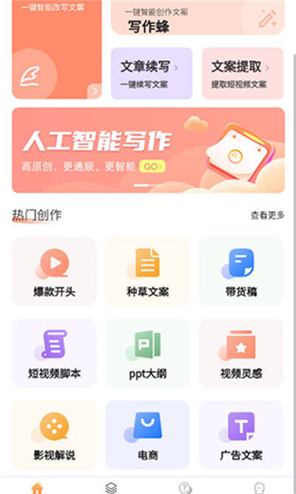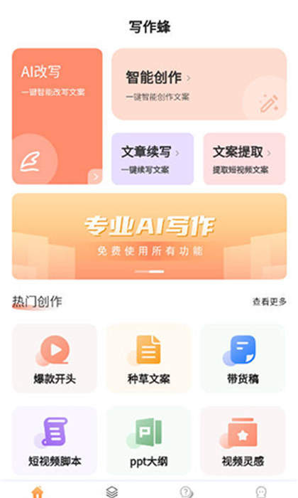 写作蜂是一款十分好用的进行书写创作的软件,用户们只需要在这款软件里面输入关键词的内容就可以为用户们创作出原创的文字,同时这款软件还具有智能改写和扩展等许许多多种功能内容去进行使用,使用户们的写作变得更加的容易。