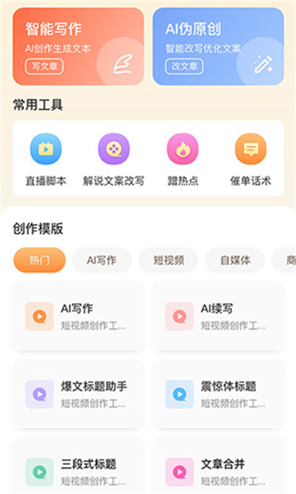 1、这款软件为用户们带来了文案模版的内容去进行使用,根据模版进行修改;