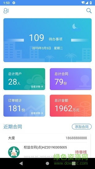 乐养云专员版软件是一款非常好用的养老办公服务手机app,用户可以在手上查看详细的用户、合同、订单数量以及金额,可以进行会员管理,欢迎喜爱的朋友到绿色资源网下载使用!