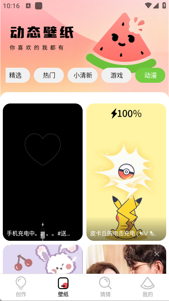 1、打开壁纸软件,点击底部“壁纸”选项,进入壁纸选择页面,在“动态壁纸”分类下,可看到不同标签,根据喜好选择标签浏览相关动态壁纸。
