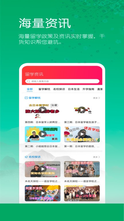 3、在此能够看到日本留学的各种信息,想要认识各种留学的信息非常方便;